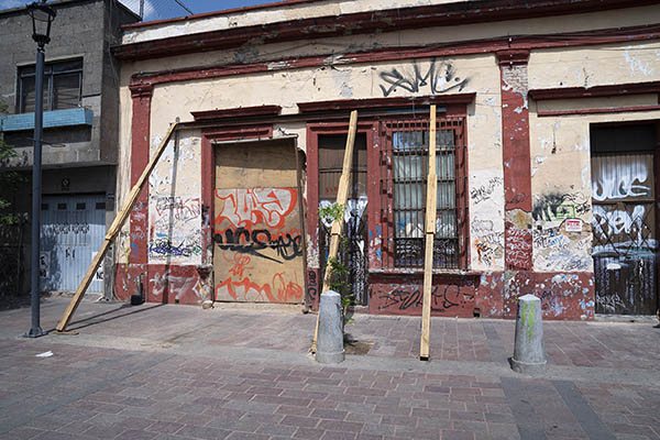 Fue suficiente caminar un par de cuadras para encontrar un ejemplo de una de las principales problemáticas del barrio y del primer cuadro de la ciudad: las casas abandonadas. En la esquina de las calles Reforma y Pino Suárez se encuentra lo que queda de la que es conocida como Casa Baruqui: unos cuantos muros en los que se alcanzan a apreciar algunos decorados. Y nada más. Del resto de la casa, construida a finales del siglo XIX o principios del XX, no quedan más que montículos de escombros invadidos por la maleza.